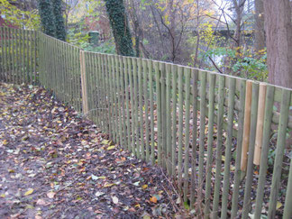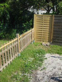 In einer Naturkita: Unauffällig wurden die Spalten gesichert. Wegen des Gewässers ist der Zaun besonders hoch.