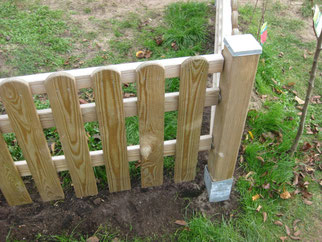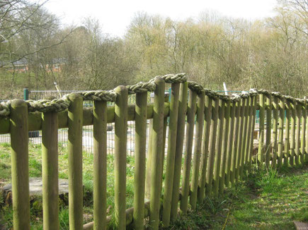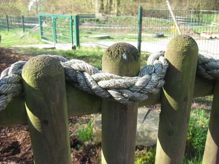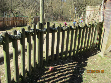 GLeicher PLatz: andere Stelle des Zauns. Das Tau muss wieder höher gezogen werden. Die Spalten sind zu tief.